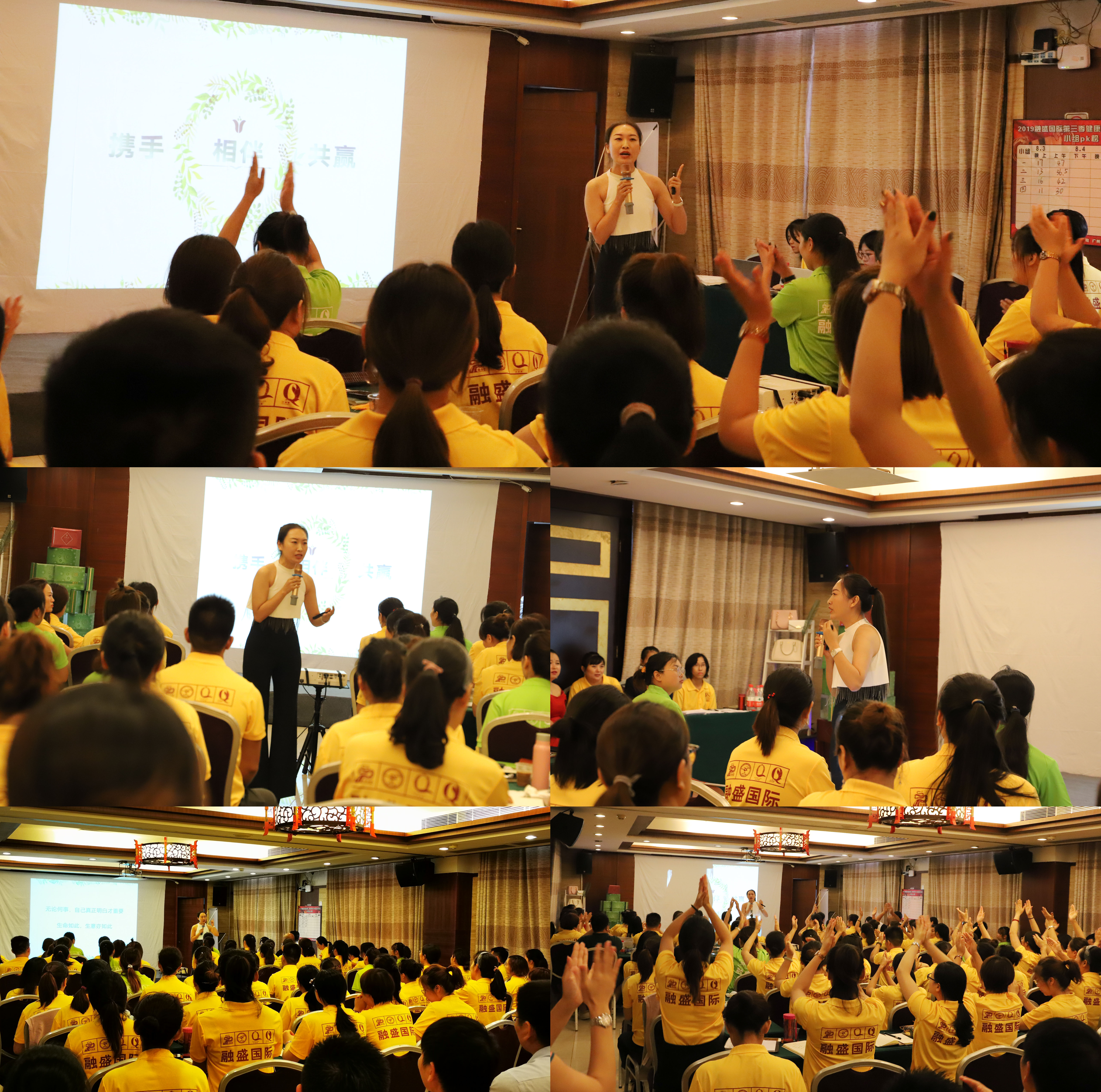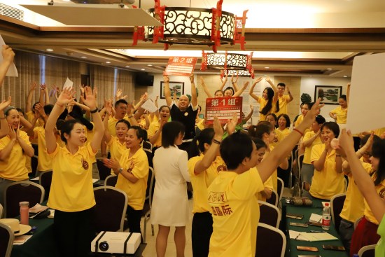 8月3日晚餐后,會(huì)議正式拉開了帷幕,我們首先通過VCR跟大家一起回顧2019年前兩季度健康大本營培訓(xùn)會(huì)的精彩花絮。接著大家都按耐不住激動(dòng)的心情,在主持人的帶領(lǐng)下,進(jìn)行了團(tuán)隊(duì)展示,讓大家密切地團(tuán)結(jié)起來。
